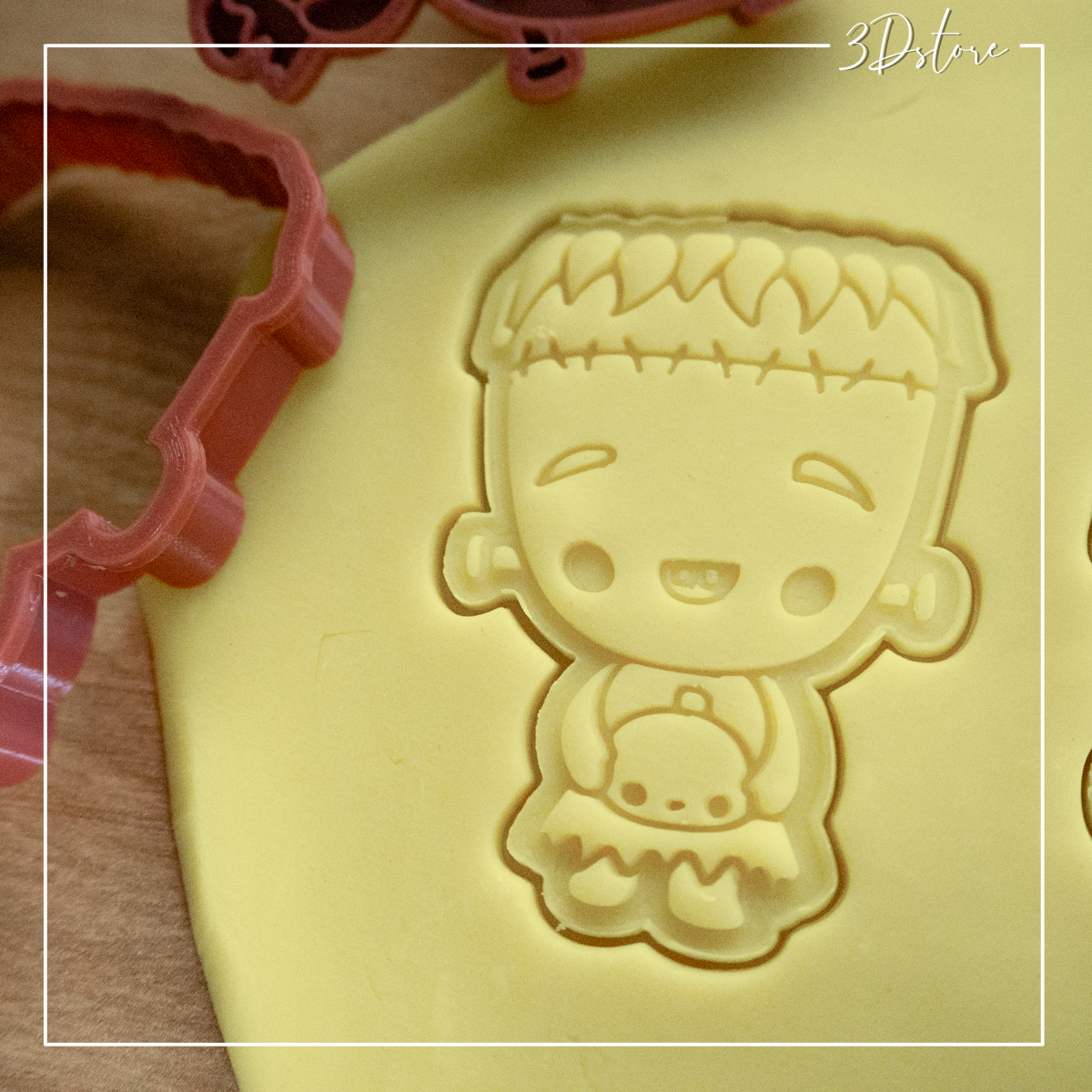 Un emporte-pièce qui transforme la pâte en petits monstres attachants. La forme du personnage apporte un charme particulier aux préparations, mêlant Halloween et univers mignon. Chaque création devient un petit monstre attachant prêt à prendre place sur un plateau ou à servir de cadeau gourmand. Les biscuits deviennent des éléments visuels qui renforcent le thème Halloween et la mise en scène sur la table. Le petit monstre Frankenstein, avec ses traits amusants et son allure attachante, donne un caractère unique à chaque fournée.